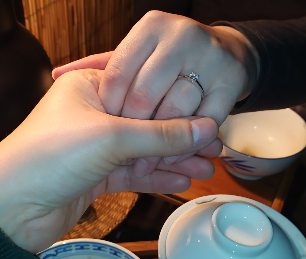 Žádost o ruku proběhla o několik let později v tom samém podniku, kde proběhlo první rande.